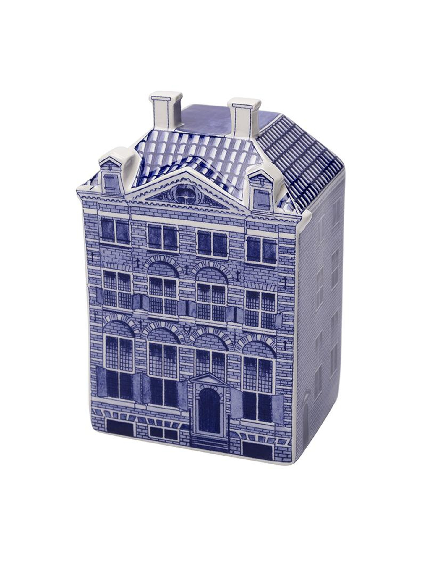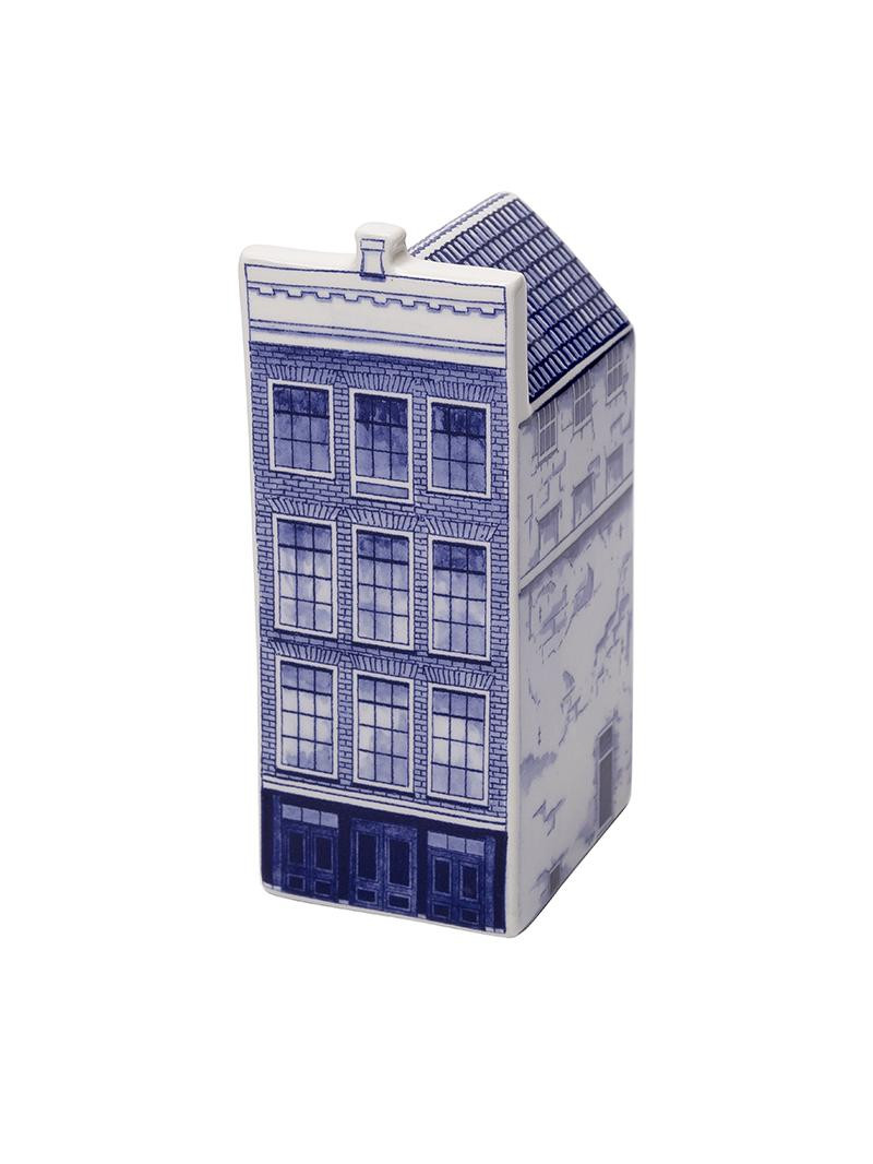 Delft Blue house (souvenirs) large. A canal house is a house on a canal and is generally old. The houses are usually tall, narrow, and deep because taxes were levied based on the width of the facade. Due to the risk of flooding, the front door is sometimes on the first floor, and the house is accessible via a landing. Canal houses usually had a cellar and a storage attic, where trading stock could be stored. A hoist or a special beam was attached to the attic for hoisting goods.